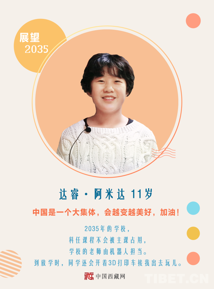 黨的十九屆五中全會提出,到2035年基本實現(xiàn)社會主義現(xiàn)代化。你期待2035年的到來嗎?在你心中,2035年的中國會是什么樣?未來15年,你有哪些大規(guī)劃、小目標?中國西藏網(wǎng)策劃推出系列海報,本期帶你走進小朋友們關(guān)于教育“未來力”的展望與暢想?!?/p>