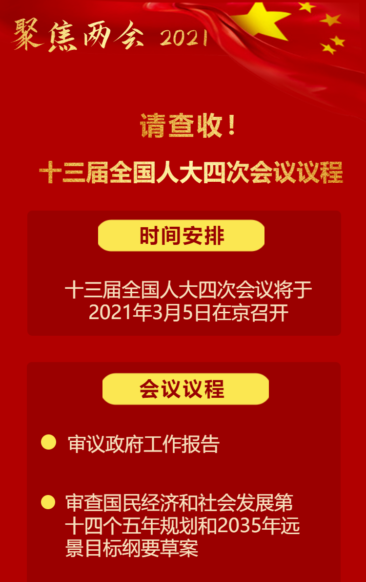 【聚焦兩會 2021】請查收!十三屆全國人大四次會議議程