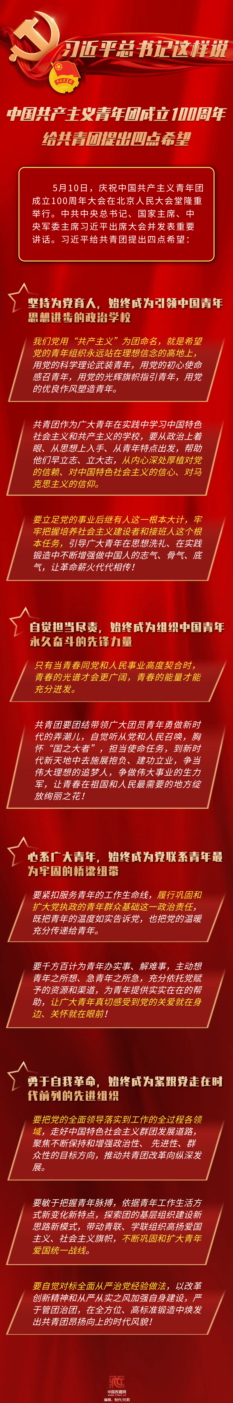 【習(xí)近平總書記這樣說】中國共產(chǎn)主義青年團(tuán)成立100周年 給共青團(tuán)提出四點(diǎn)希望