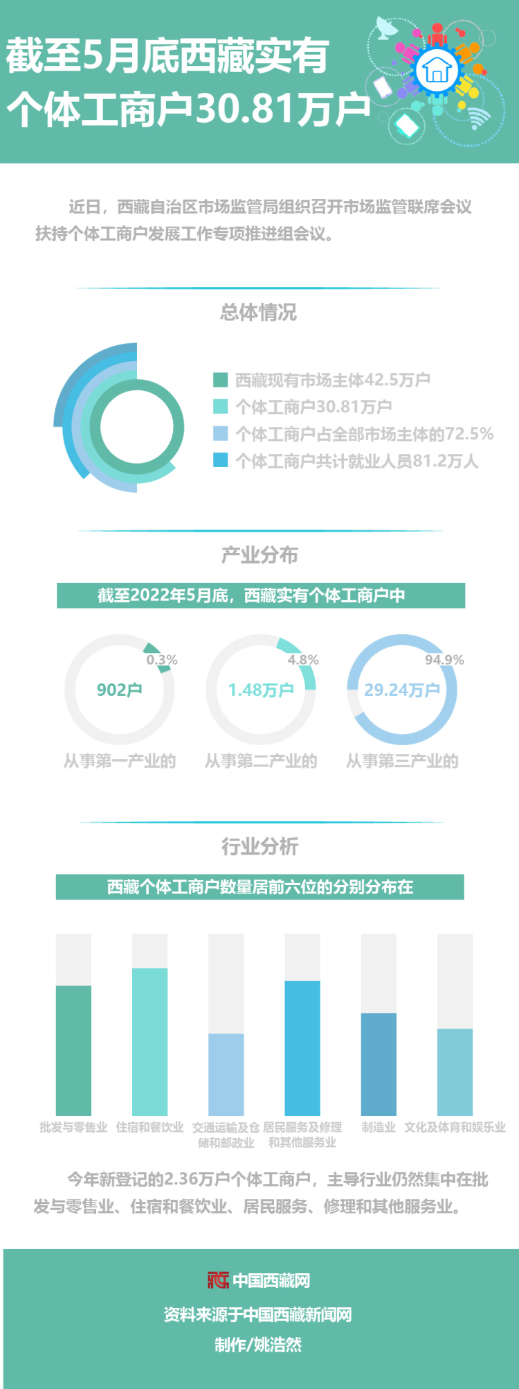 圖解|截至5月底西藏實(shí)有個(gè)體工商戶30.81萬戶