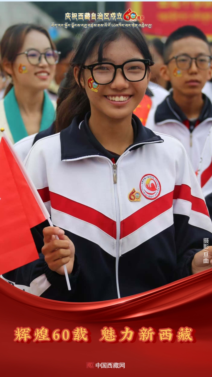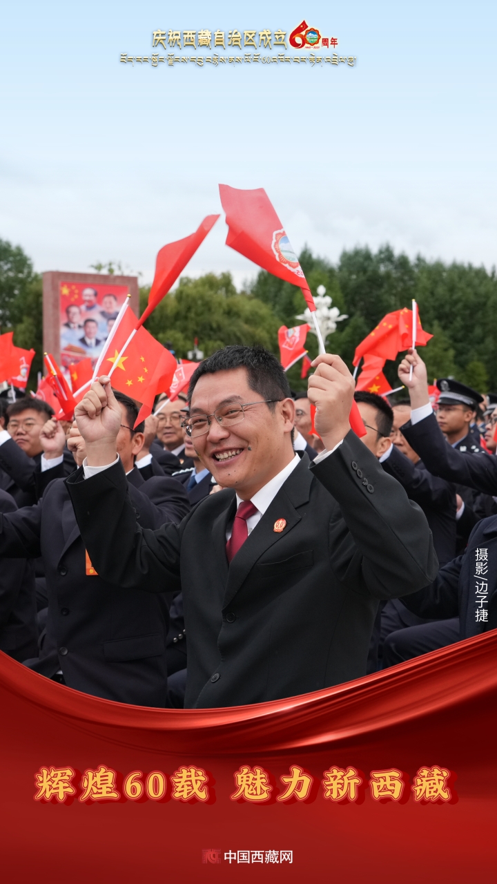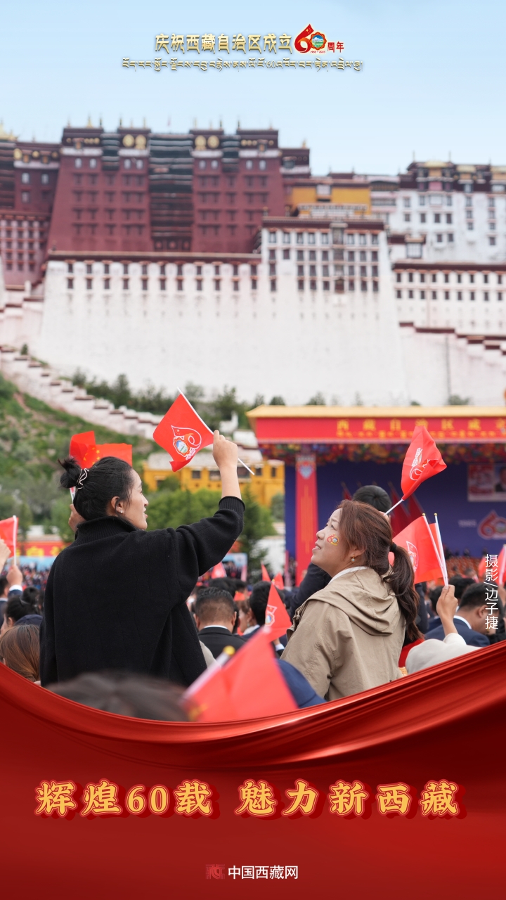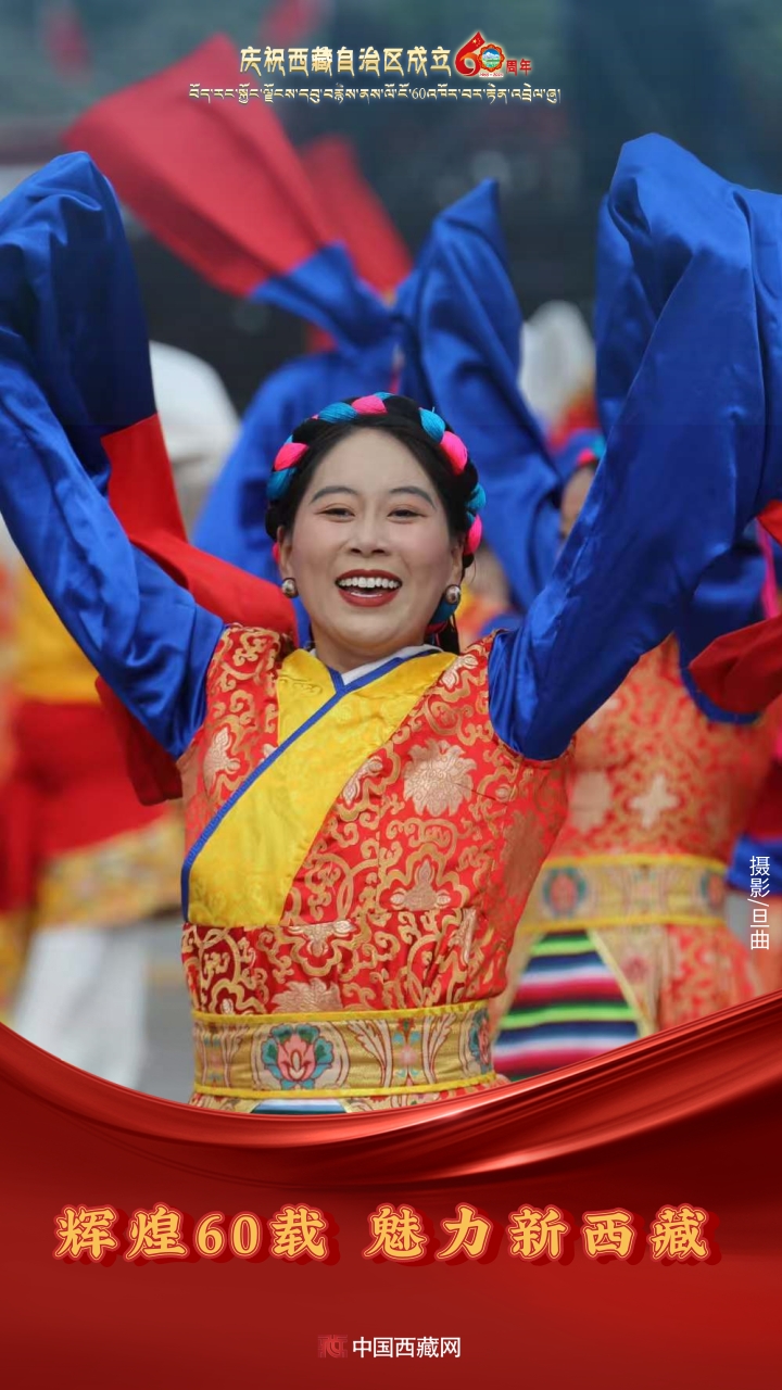 六十年風雨兼程,六十年春華秋實,都在這一刻化作人們真摯的笑容與熱烈的歡呼。讓我們祝福祖國!祝西藏自治區(qū)繁榮昌盛,祝西藏各族人民幸福安康?。ㄖ袊鞑鼐W(wǎng)攝影/邊子捷 旦曲 趙振宇 制作/王茜)