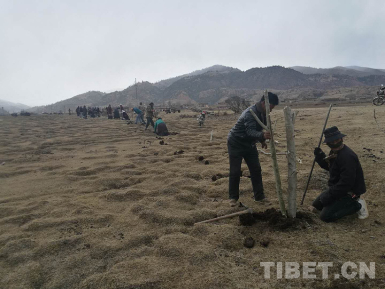 “每年這個(gè)時(shí)候我們都會(huì)進(jìn)行植樹(shù),植樹(shù)造林是一項(xiàng)功在當(dāng)代、利在千秋的事情,我們每個(gè)人都要樹(shù)立植樹(shù)護(hù)林的意識(shí),用實(shí)際行動(dòng)使家鄉(xiāng)的山更藍(lán)、水更清,空氣更清新?!奔淄萱?zhèn)江達(dá)村村民俄色邊說(shuō)邊干著,干勁很足。