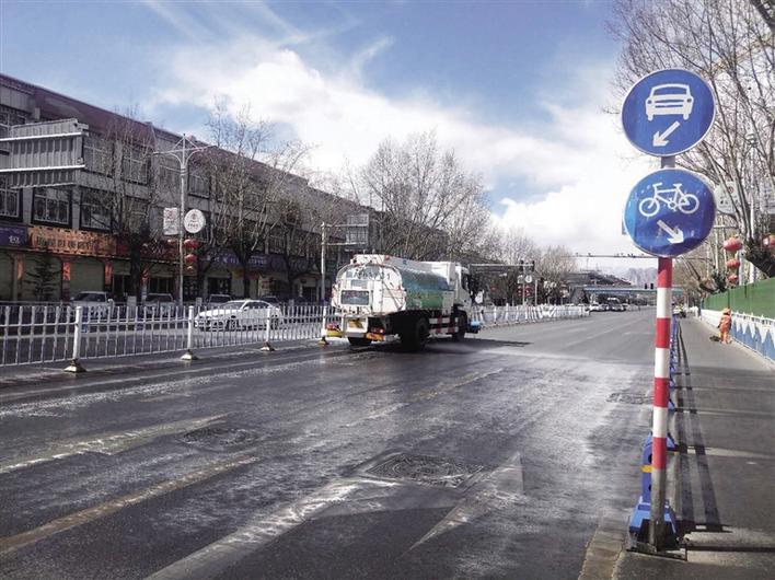 拉薩潔達環(huán)衛(wèi)保潔有限公司開展市區(qū)灑水降塵作業(yè)
