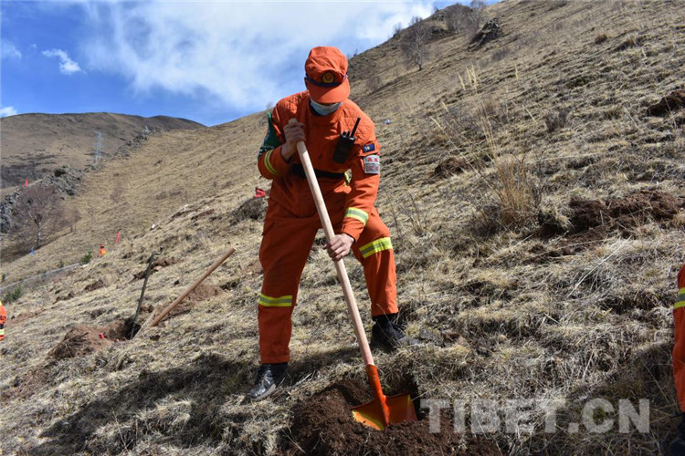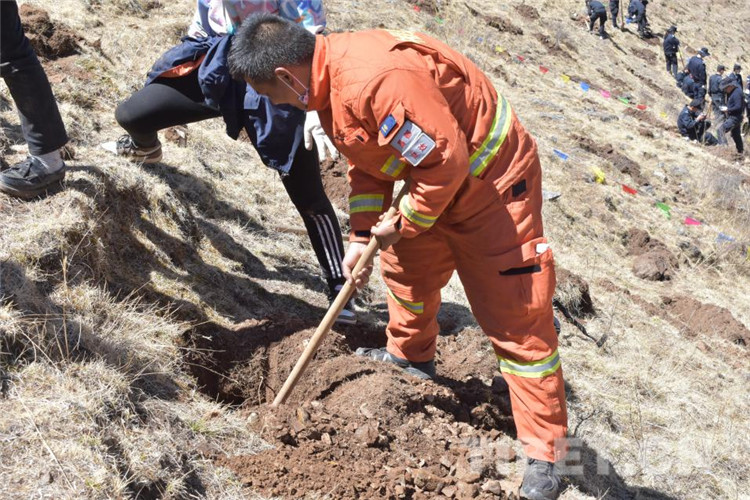 圖為昌都市森林消防支隊(duì)江達(dá)中隊(duì)積極參加駐地植樹(shù)活動(dòng)