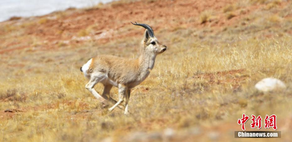 圖為奔跑的國家二級保護(hù)動物藏原羚。 武雪峰 攝