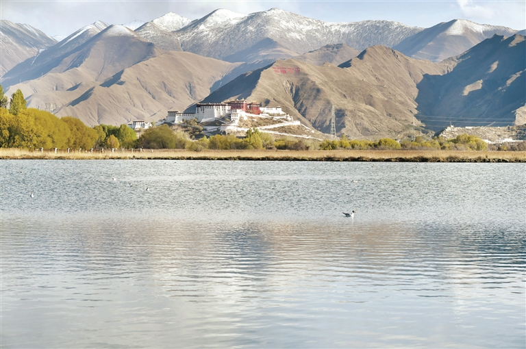 圖為拉魯濕地及遠(yuǎn)處的布達(dá)拉宮。 新華社記者 覺(jué) 果攝