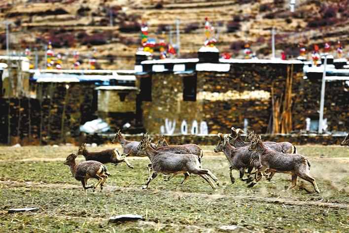 圖為瓊結瓊果河國家濕地公園瓊結鎮(zhèn)雪康村段有巖羊出沒。 記者 王菲 通訊員 曲杰 攝