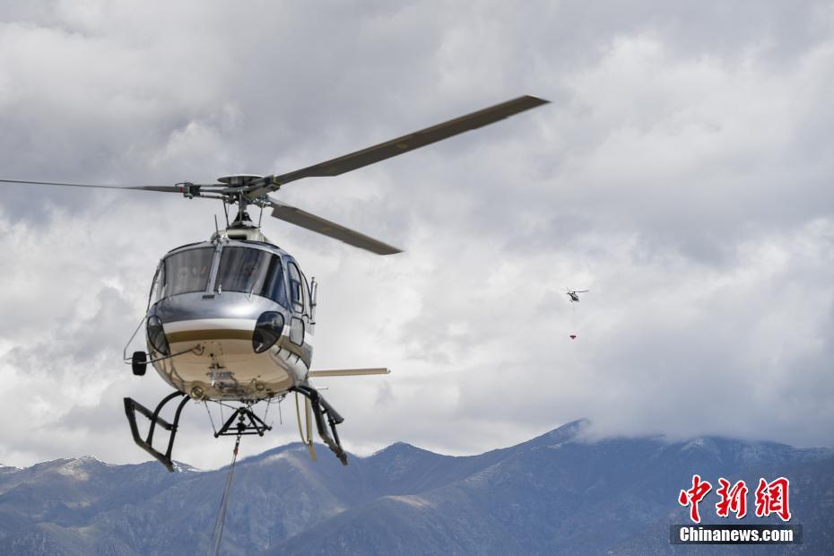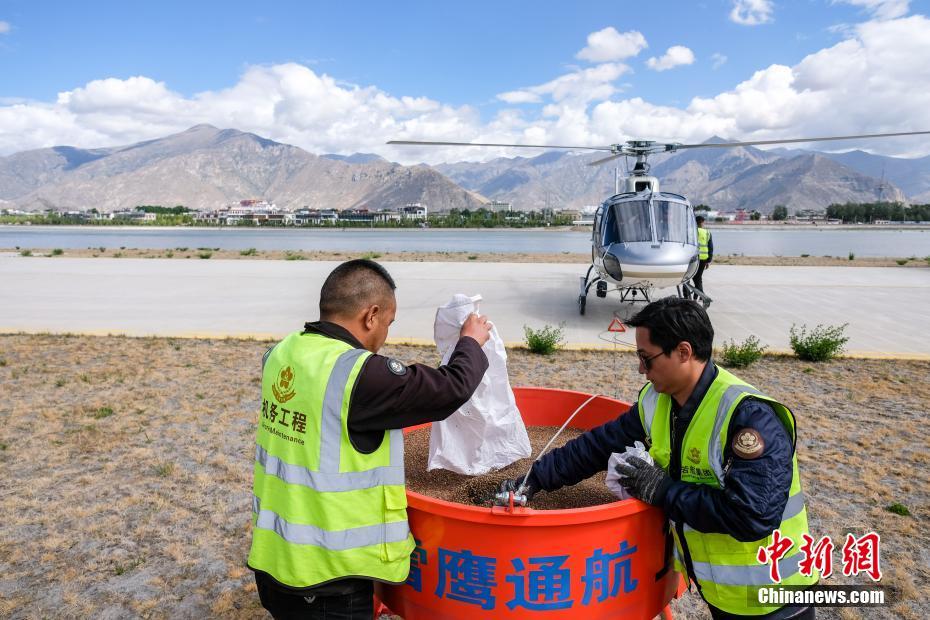 6月9日,西藏拉薩,拉薩雪鷹通航直升機(jī)從機(jī)場(chǎng)起飛前往造林點(diǎn)。當(dāng)日,西藏自治區(qū)林業(yè)和草原局在拉薩市組織開展首次飛播造林工作,此次飛播造林共設(shè)計(jì)9個(gè)飛播作業(yè)區(qū),其中拉薩市7個(gè),山南市2個(gè),由拉薩雪鷹通用航空公司負(fù)責(zé)飛機(jī)播種。設(shè)計(jì)飛播造林面積21.8萬(wàn)畝,設(shè)計(jì)飛機(jī)播種沙棘、砂生槐等樹(草)種約119.3噸。中新社記者 何蓬磊 攝