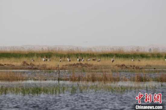 圖為黑頸鶴。可魯克湖-托素湖自然保護(hù)區(qū)服務(wù)中心供圖