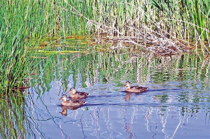 夏日的拉魯濕地美如畫(huà)。這是野鴨在拉魯濕地的水面上游弋。記者 洛?!z