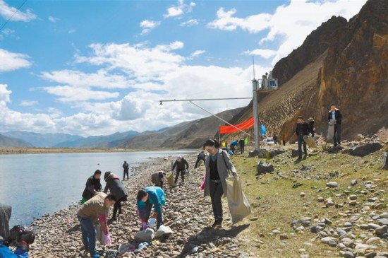 圖為基層河長辦組織干部職工開展河道衛(wèi)生清理。西藏日報記者 潘璐 攝