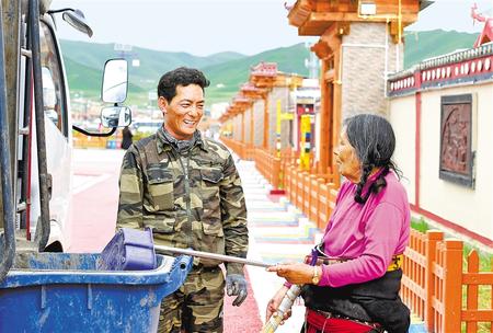 卓瑪加開(kāi)著垃圾轉(zhuǎn)運(yùn)車(chē)挨家挨戶(hù)收運(yùn)垃圾。