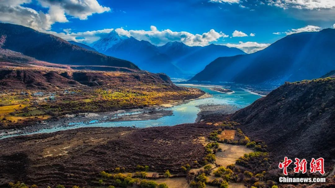 時(shí)值秋末冬初,全長504.6公里,最深處6009米的雅魯藏布大峽谷呈現(xiàn)出別樣巍峨壯觀,兩岸五彩交織的森林上雪峰林立,谷底奔涌的雅魯藏布江碧水繞田,宛若童話中的仙境。
