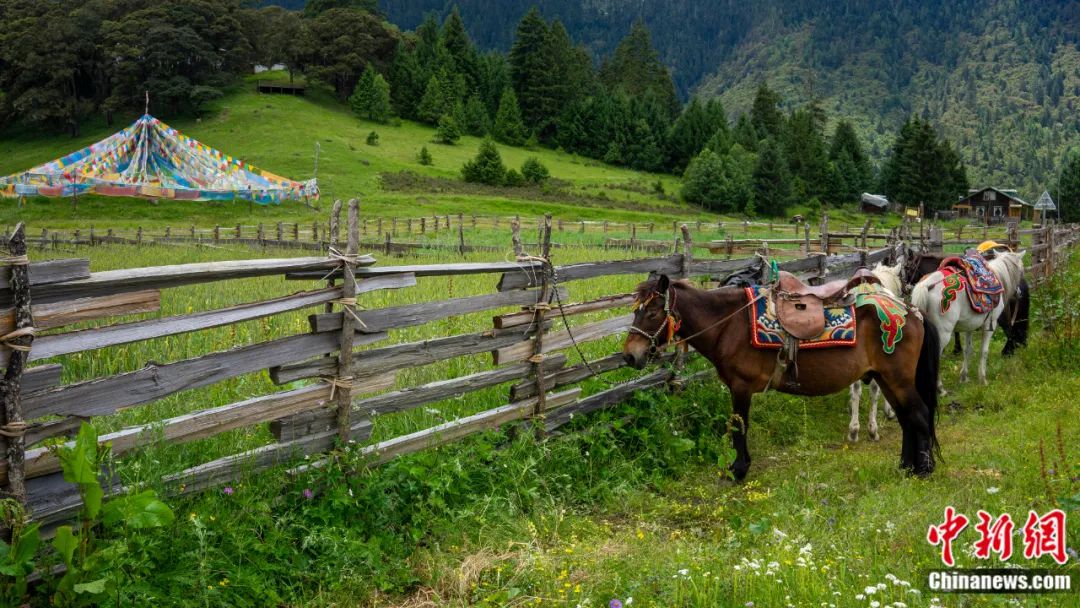 每年5至10月,品種繁多的杜鵑、鳶尾、龍膽等野花次第開放,在冷云杉林、皚皚雪峰、蜿蜒溪流的映襯下,美輪美奐,被稱為“東方小瑞士”。