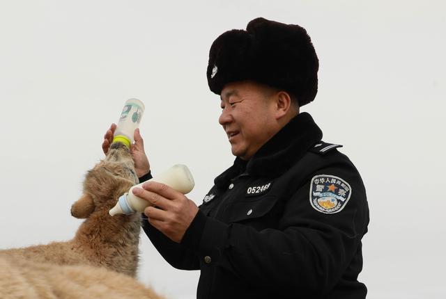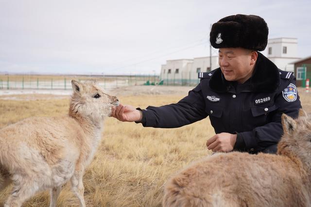 12月7日,可可西里索南達(dá)杰保護(hù)站站長趙新錄在給藏羚羊幼仔喂奶。