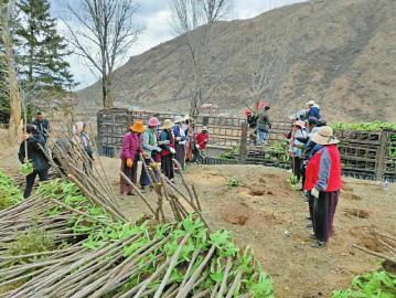爐霍縣斯木俄米脫貧攻堅造林專合社組織村民下苗,準備栽種。 (爐霍縣林草局供圖)