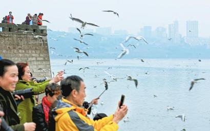 孟冬時(shí)節(jié),久違的暖陽(yáng)普照在瀘州市東門口長(zhǎng)江江面上,數(shù)百只紅嘴鷗翩翩起舞,休閑的市民盡情享受著大自然的美,笑語(yǔ)聲、風(fēng)聲、水聲、鳥(niǎo)聲相互交織,回蕩著自然生態(tài)和諧的旋律。江河清澈,風(fēng)景優(yōu)美,飛抵瀘州越冬的紅嘴鷗逐年增多,這是瀘州全面推行河長(zhǎng)制帶來(lái)的成效。
