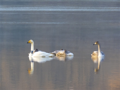 清澈平靜的河面上,幾只大天鵝聚在一起戲水,其中一只通身雪白的大天鵝脖頸處戴著一只藍(lán)白相間的“項(xiàng)圈”,“項(xiàng)圈”上刻著“IT45”的字樣。[詳細(xì)]