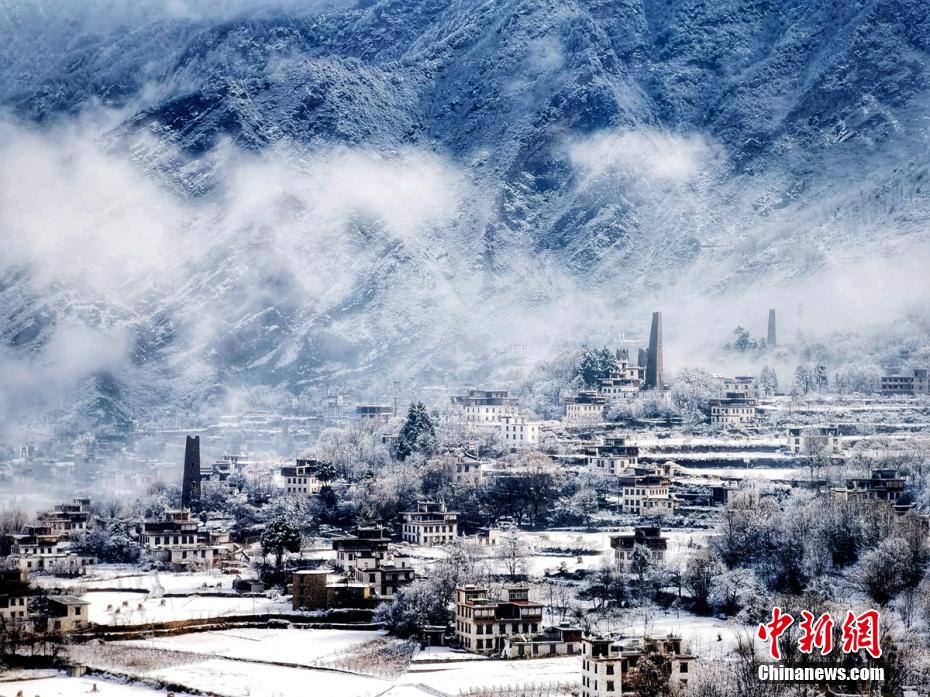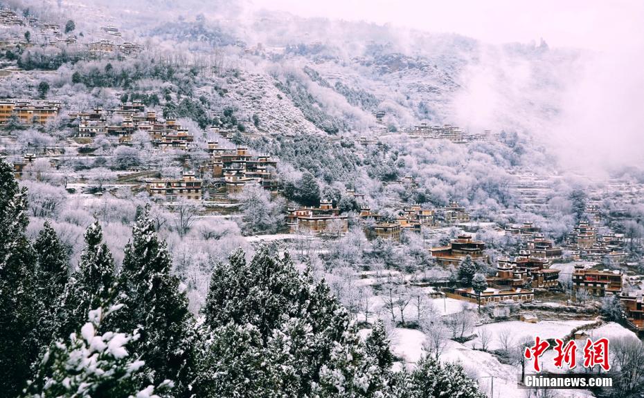 圖為丹巴藏寨披上一層“白紗”。 吉進 攝