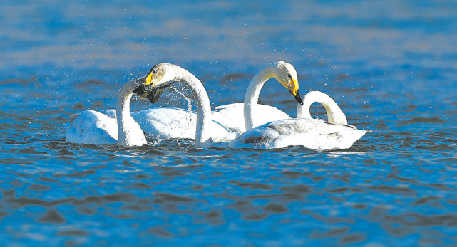 今冬,在海東市化隆回族自治縣群科鎮(zhèn)安達其哈村的黃河水面上,數百只大天鵝悠然覓食、棲息,美麗的大天鵝和清澈的黃河水勾勒出一幅美麗的冬日畫卷。