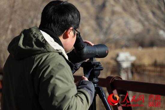 楊樂(lè)在拉魯濕地觀測(cè)鳥(niǎo)類情況。 李海霞 攝
