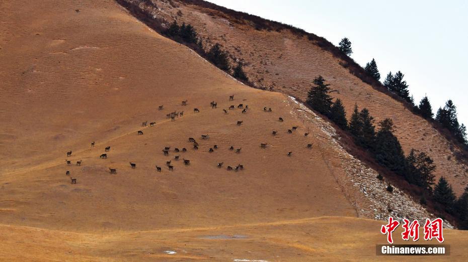 2月5日,在祁連山國家公園甘肅南段發(fā)現(xiàn)近百只野生馬鹿種群。 吳生文 攝