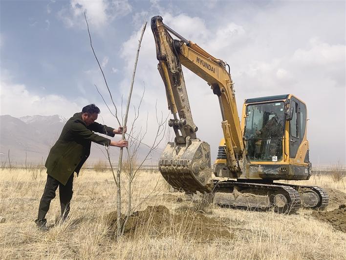 死了那么多樹,為什么還在堅(jiān)持?“那幾年,在這里隨手捧起一把黃土,還會(huì)沙化。我必須堅(jiān)持下來?!彼骼柿_布說。2015年春天,索朗羅布再次貸款40余萬元購(gòu)買了一臺(tái)挖掘機(jī),準(zhǔn)備修建水渠和挖坑。同年3月,索朗羅布又一次獨(dú)自種樹苗,母親卓瑪央金心疼壞了,于是帶著村里姐妹們前來幫忙。不僅如此,她們還帶來了防止草原鼠啃食樹根的土方法,用塑料瓶圍著樹根包一圈,既能防止草原鼠搞破壞,還能節(jié)省成本。