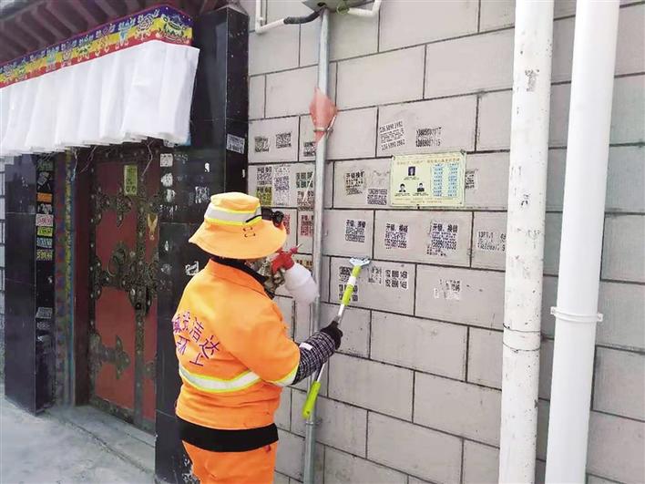 為有效遏制城市“牛皮癬”,拉薩城關(guān)區(qū)潔達(dá)環(huán)衛(wèi)保潔有限公司強(qiáng)化巡查及整治力度,對(duì)小廣告進(jìn)行徹底清除。對(duì)于很長(zhǎng)一段時(shí)間沒有被清理的小廣告,公司還會(huì)對(duì)負(fù)責(zé)相關(guān)區(qū)域的環(huán)衛(wèi)工人進(jìn)行罰款。