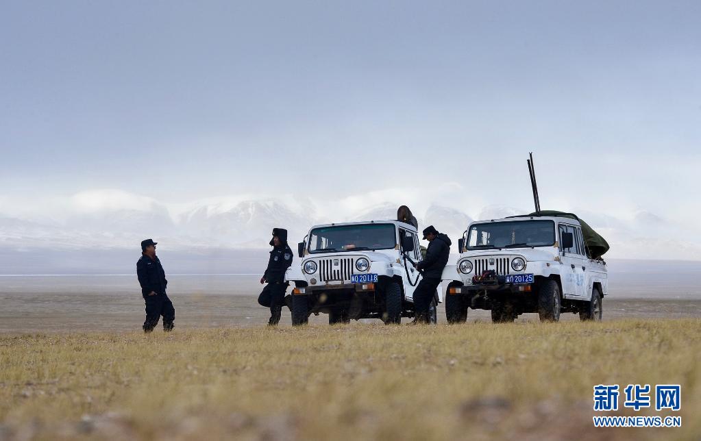 2016年12月1日,袁廣明(右一)和隊(duì)員在可可西里巡山途中。新華社記者 吳剛 攝