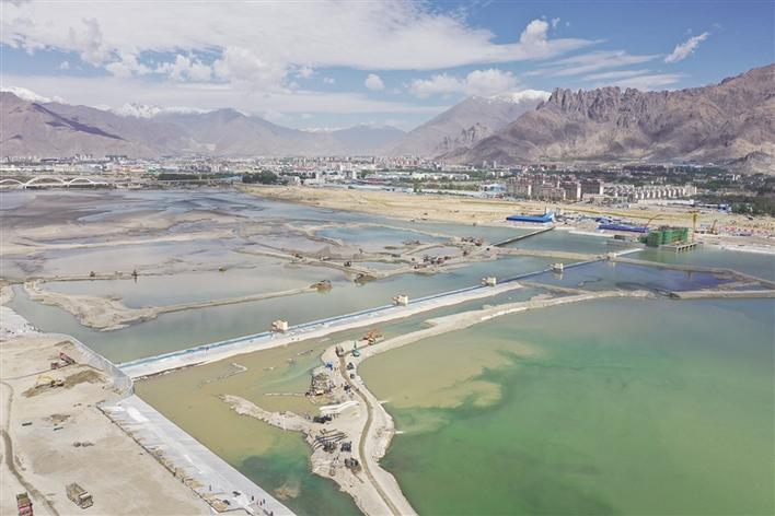 拉薩河河勢控導(dǎo)工程(濱江花園段)工程技術(shù)部主任劉誠介紹,拉薩河河勢控導(dǎo)工程(濱江花園段)由中國水電基礎(chǔ)局承建,總投資4.4億元,壩址位于拉薩河城區(qū)段。該工程于2020年5月25日進行開工準備,9月2日正式開始主體工程施工任務(wù)。工程屬于拉薩河城區(qū)段自下而上的第一座攔河蓄水建筑物,位于2#閘下游約1.635千米。工程包括氣盾壩、調(diào)節(jié)閘、導(dǎo)流墻、魚道和充排氣泵房等部分。