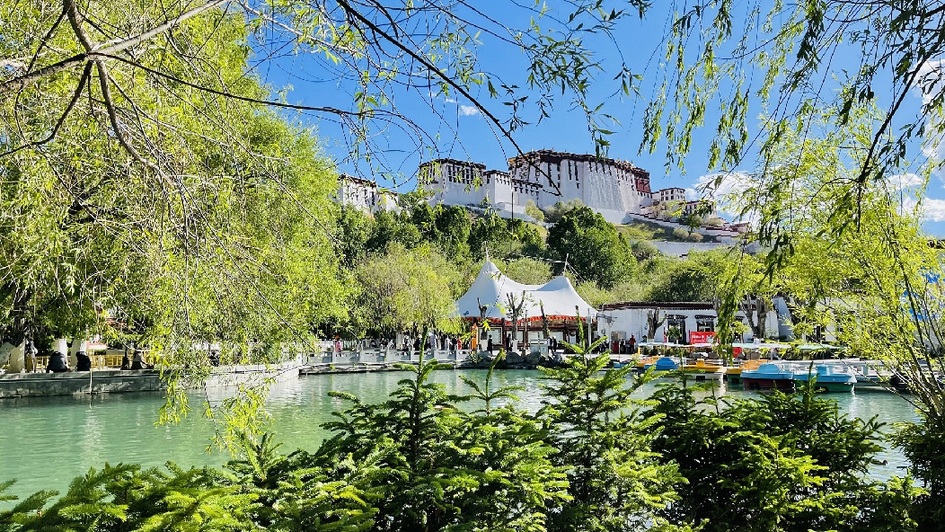 隨著氣溫逐漸上升,拉薩處處綠樹成蔭、鳥語花香。位于布達拉宮背后的宗角祿康公園樹木郁郁蔥蔥、湖水清澈見底,成為市民和游客避暑、納涼、游玩、休閑的首選地。