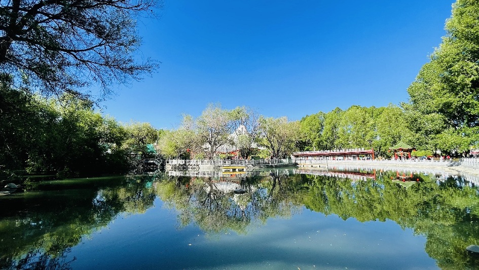 宗角祿康公園內(nèi)平靜的水面(6月14日攝)。 羅布曲珍 攝