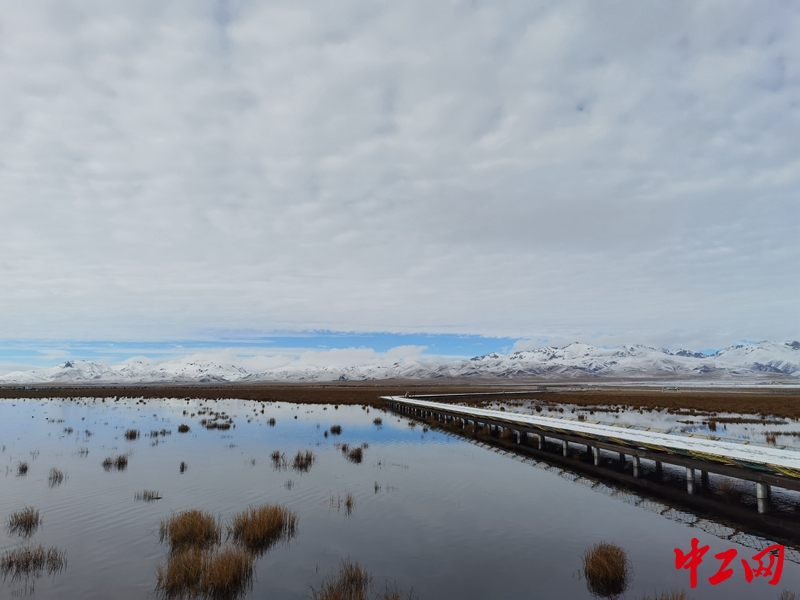 10月20日,“母親河畔的中國(guó)”采訪(fǎng)團(tuán)來(lái)到位于四川若爾蓋濕地國(guó)家級(jí)自然保護(hù)區(qū)的花湖濕地。十月末的若爾蓋縣氣溫已接近零度,遠(yuǎn)處山峰銀裝素裹,陽(yáng)光從低沉的云朵中一瀉千里,照亮了靜謐的花湖濕地。