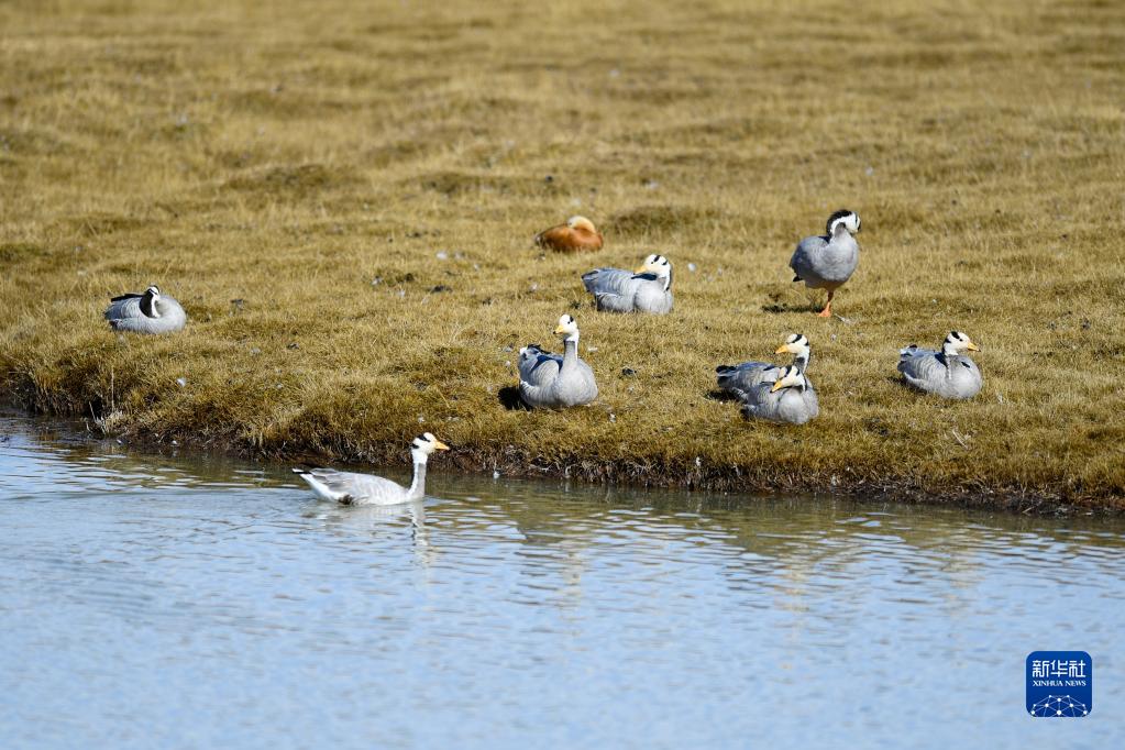 這是10月19日在三江源國(guó)家公園黃河源園區(qū)內(nèi)拍攝的一群斑頭雁。新華社記者 李占軼 攝