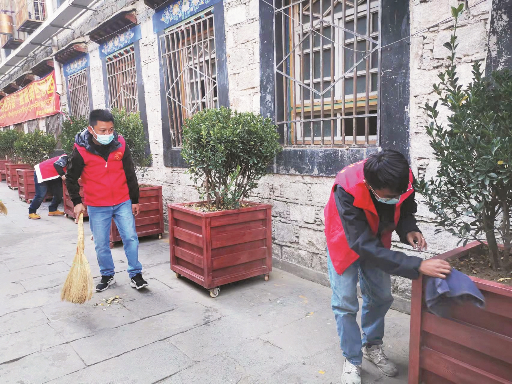 近日,西藏拉薩市城關(guān)區(qū)整治背街小巷工作組工作人員和策門林社區(qū)工作人員共同在策門林社區(qū)開展背街小巷環(huán)境清理工作。活動中,工作人員身穿紅馬甲,大家手拿掃帚、抹布分工合作,各司其責(zé),認(rèn)真打掃轄區(qū)衛(wèi)生,充分發(fā)揮不怕臟、不怕累的精神,齊心協(xié)力為轄區(qū)居民營造一個更美好、更舒心、更便利的生產(chǎn)生活環(huán)境。同時,工作人員還給社區(qū)居民宣傳環(huán)保知識,引導(dǎo)廣大居民群眾充分發(fā)揮主人翁意識,從自身做起,從一點一滴做起,共同維護(hù)社區(qū)良好環(huán)境。