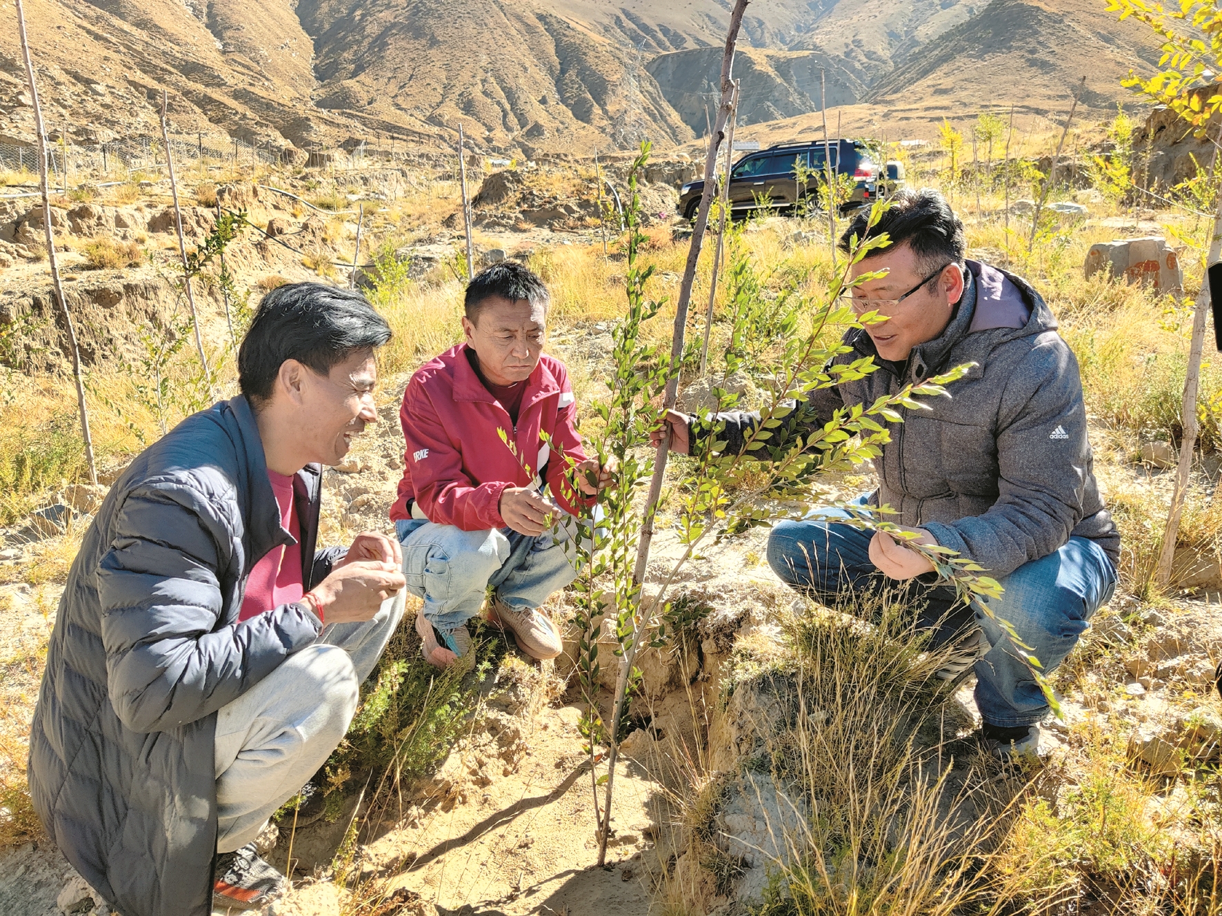 圖為工作人員在協(xié)榮村營造林“先造后補(bǔ)”作業(yè)點上查看苗禾生長情況。 拉薩融媒記者 余洋洋攝
