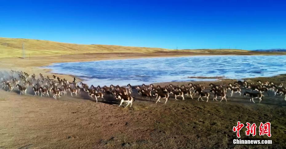 近日,在地處黃河源頭的青海省瑪多縣黃河鄉(xiāng),當(dāng)?shù)啬撩袷状谓嚯x拍攝到大規(guī)模藏野驢種群。圖為藏野驢種群在草原上奔跑。[詳細(xì)] -
