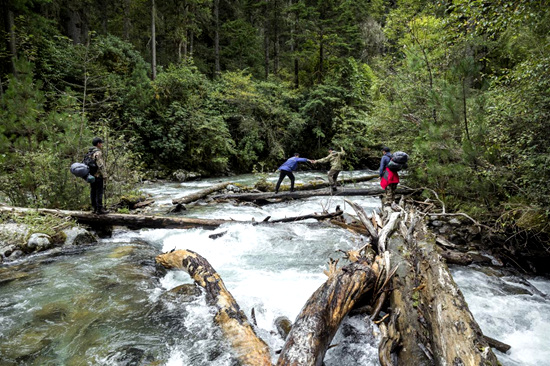 科研人員在調(diào)查途中。圖片由山水自然保護中心提供