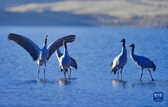 近日,來到西藏拉薩市林周縣的黑頸鶴已達1500只左右,這里成為黑頸鶴越冬的樂園。