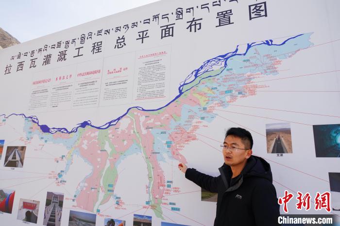 圖為貴德縣拉西瓦灌溉工程管理局副局長(zhǎng)方軍介紹工程詳情。 馬銘言 攝