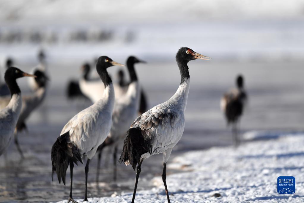 在拉薩市林周縣境內越冬的黑頸鶴(2月22日攝)。新華社記者 姜帆 攝