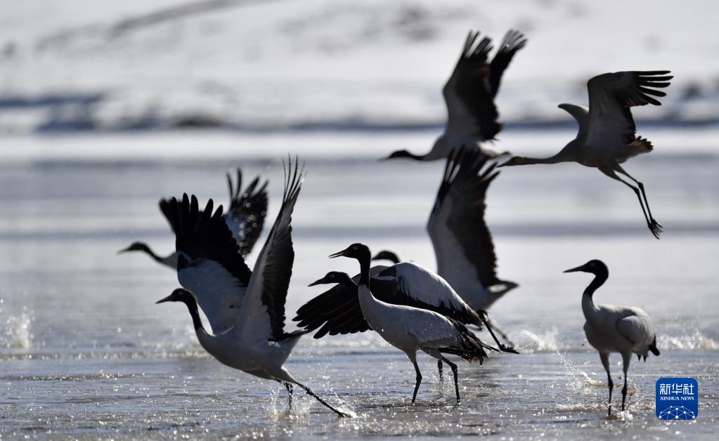 早春時節(jié),在西藏拉薩市林周縣境內越冬的黑頸鶴開始為飛往藏北高原產蛋做準備。黑頸鶴是國家一級保護動物。據(jù)了解,近年來,西藏自治區(qū)多措并舉實施生態(tài)建設工程,黑頸鶴數(shù)量逐年遞增,目前西藏黑頸鶴數(shù)量超過萬只。