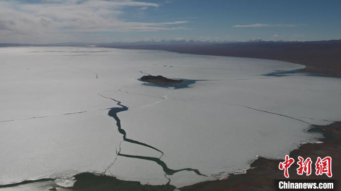巍巍高原上,遼闊的阿其克湖冰雪初融,消融的冰面上,縱橫交錯的冰層裂痕筆走龍蛇,氣勢恢宏?!∩轩i 攝