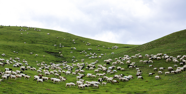 三江集團湖東種羊場公司的羊群在天然牧場上覓食。資料照片