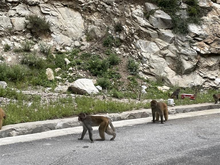 從山南市加查縣沿306省道自駕前往林芝市朗縣的路上,隨時(shí)可以遇到下山來(lái)覓食的野生藏獼猴。