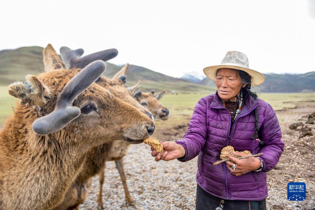 20世紀(jì)70年代,家住昌都市類烏齊縣長毛嶺鄉(xiāng)協(xié)塘村的向秋拉姆發(fā)現(xiàn)并照顧了3只離群的小馬鹿,從此與馬鹿結(jié)緣。40多年來,向秋拉姆悉心照料數(shù)百只馬鹿。目前,她的兩個(gè)兒子延續(xù)著照顧馬鹿的使命。