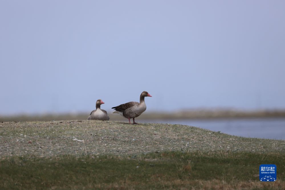 5月23日,在青海省海北藏族自治州海晏縣甘子河濕地,青海湖畔的灰雁。(受訪者供圖)