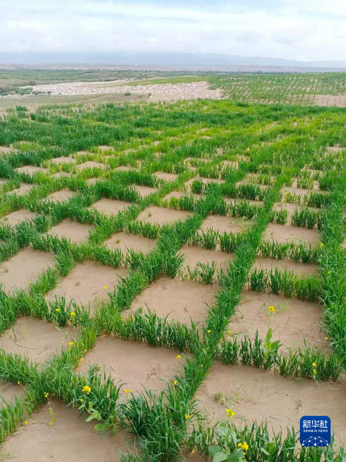 “2018年以來,我們積極開展治沙新材料試驗研究,利用小麥、青稞、燕麥、披堿草等生物材料開展活沙障設置試驗。現(xiàn)在四種生物沙障當年成活率可達到95%,起到良好的固沙作用?!壁w雪彬說。