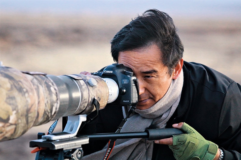夕陽(yáng)西下,大風(fēng)肆虐。49歲的才項(xiàng)南加系上圍巾趕忙下車(chē),從后備箱包裹嚴(yán)實(shí)的毛毯里拿出相機(jī)和三腳架,稍做調(diào)試后,便扛著裝備三步并作兩步地趕往200米外的一片濕地?!摆s緊去看看,兩只黑頸鶴在喝水呢!”他說(shuō)。
