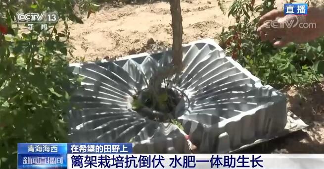 在栽培種植方面,由于枸杞樹苗比較脆弱,為了保證存活率,需要在溫室里培育一定時(shí)間才能適應(yīng)這里的氣候,之后才會(huì)移植到室外,進(jìn)行籬架栽培。而這樣的種植方式主要是為了抗倒伏,這里風(fēng)沙天氣較為頻繁,如果沒有籬架的支持保護(hù),枸杞樹很容易會(huì)栽倒,結(jié)下的果子與地表接觸一段時(shí)間后基本就會(huì)糜爛,產(chǎn)量就無法保證。大家可以再看一下枸杞樹的底部,有一個(gè)黑色的水管,工人會(huì)在水里加入水溶肥,既能澆水又能施肥,達(dá)到水肥一體。底下灰色的托板有兩個(gè)好處,一個(gè)是精準(zhǔn)灌溉,因?yàn)樵诟吆0蔚貐^(qū)氣候比較干燥、降水比較少,板上的凹槽能夠?qū)⒂晁吐端紖R聚到枸杞樹;第二個(gè)是可以遮擋陽(yáng)光,能夠抑制雜草的生長(zhǎng)。